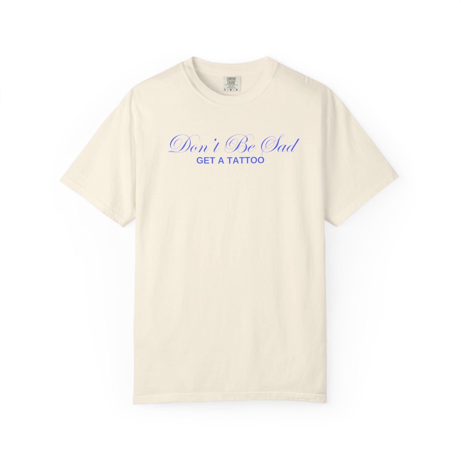 This shirt is like a gentle nudge from your cooler, more rebellious side. The side that knows a tattoo can commemorate the people, places, or things that mean the most to us. And, can brighten even the gloomiest of days. Throw it on and remind the world... 'Don't Be Sad, Get A Tattoo'.